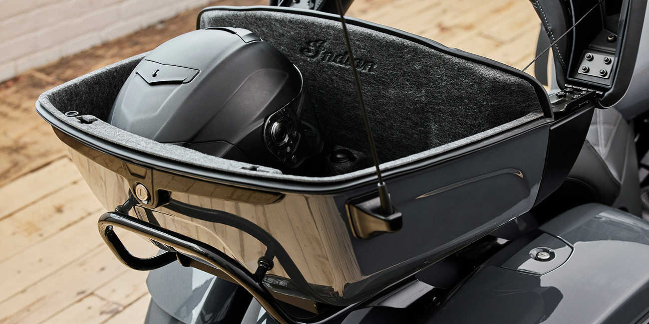 More than 133 Litres of weatherproof, remote-locking storage can handle all the gear you’ve got. Or take off the quick-release trunk to drop weight and give yourself a whole new profile.