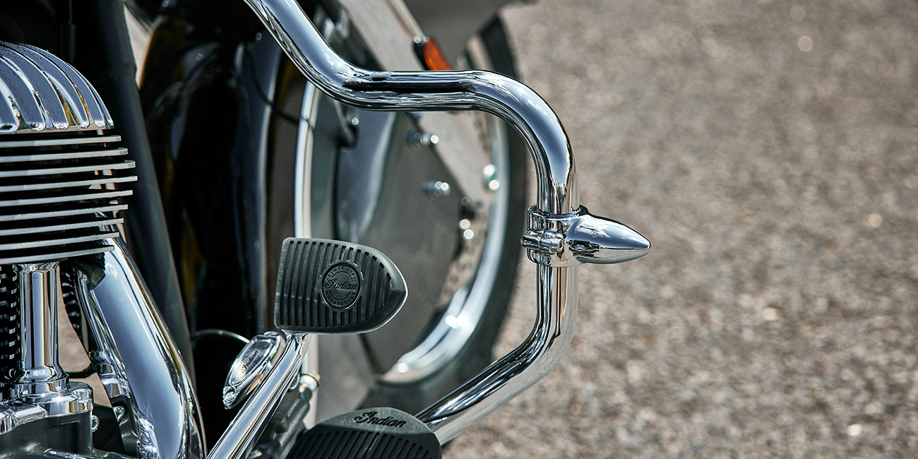 | Standard Equipment | Quick Release Windshield; Genuine Leather Seat; Remote-Locking Hard Saddlebags, Highway Bars; Tyre Pressure Monitoring; Light Bar; Selectable Ride Modes, ABS; Cruise Control; Keyless Ignition; Indian® Script Tank Badge; 12v Charging Port |