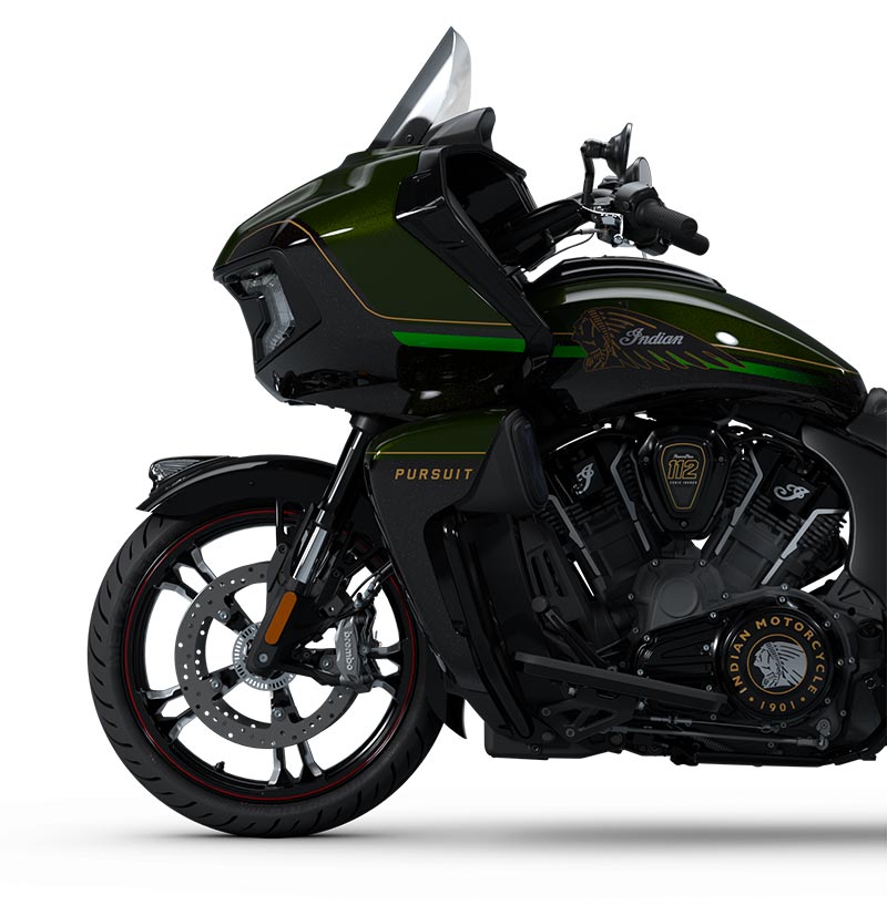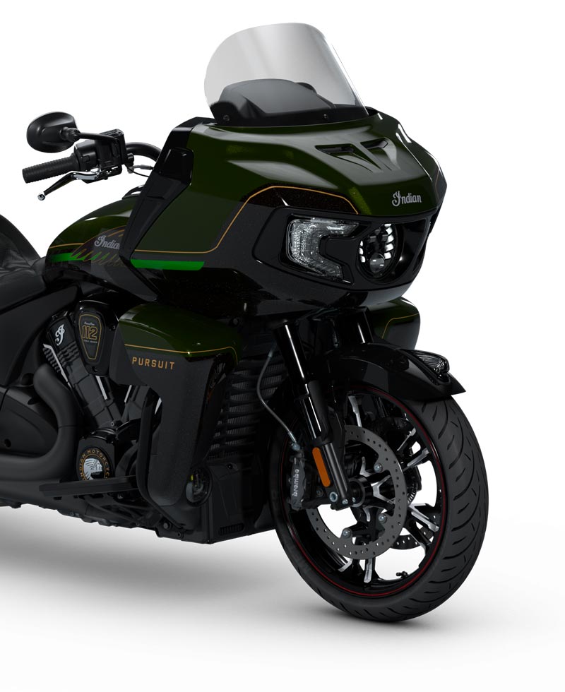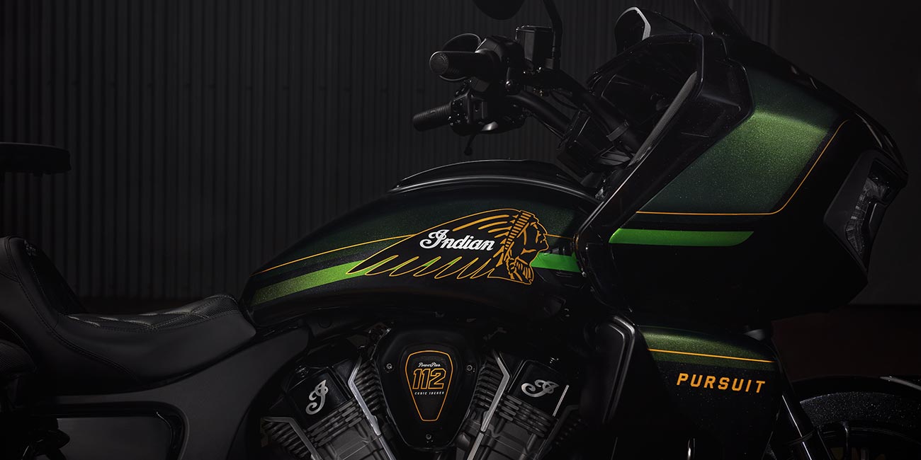 | Standard Equipment | Remote Locking Hard Saddlebags, Power Adjustable Windshield, 140+ Litres of Storage, Keyless Ignition, Adjustable Fairing Vents, USB Charger, Tyre Pressure Monitoring System (TPMS), Headdress Floorboards for Rider and Passenger, Green Colour-Matched Stitched Heated Seats, Backlit Switch Cubes with Heated Grips, Passenger Arm Rests, and Driving Lights |