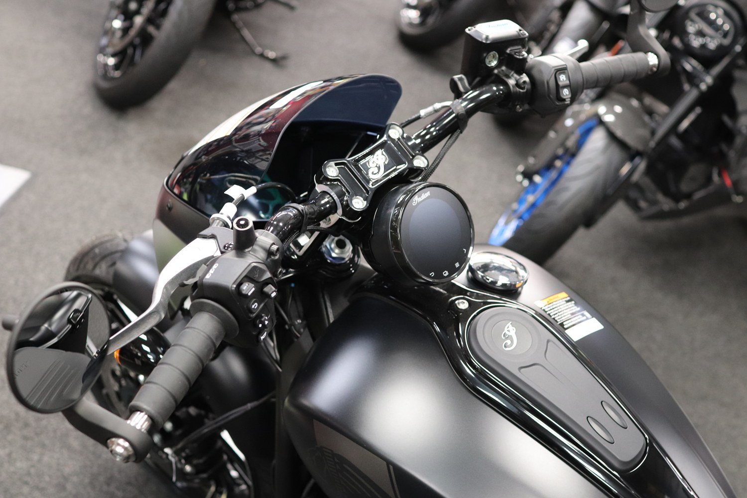 Stylish gloss black 152 mm moto style risers with machined highlights come standard. Machined triples and moto handlebars complete the package, both in custom looks and dialled ergonomics.