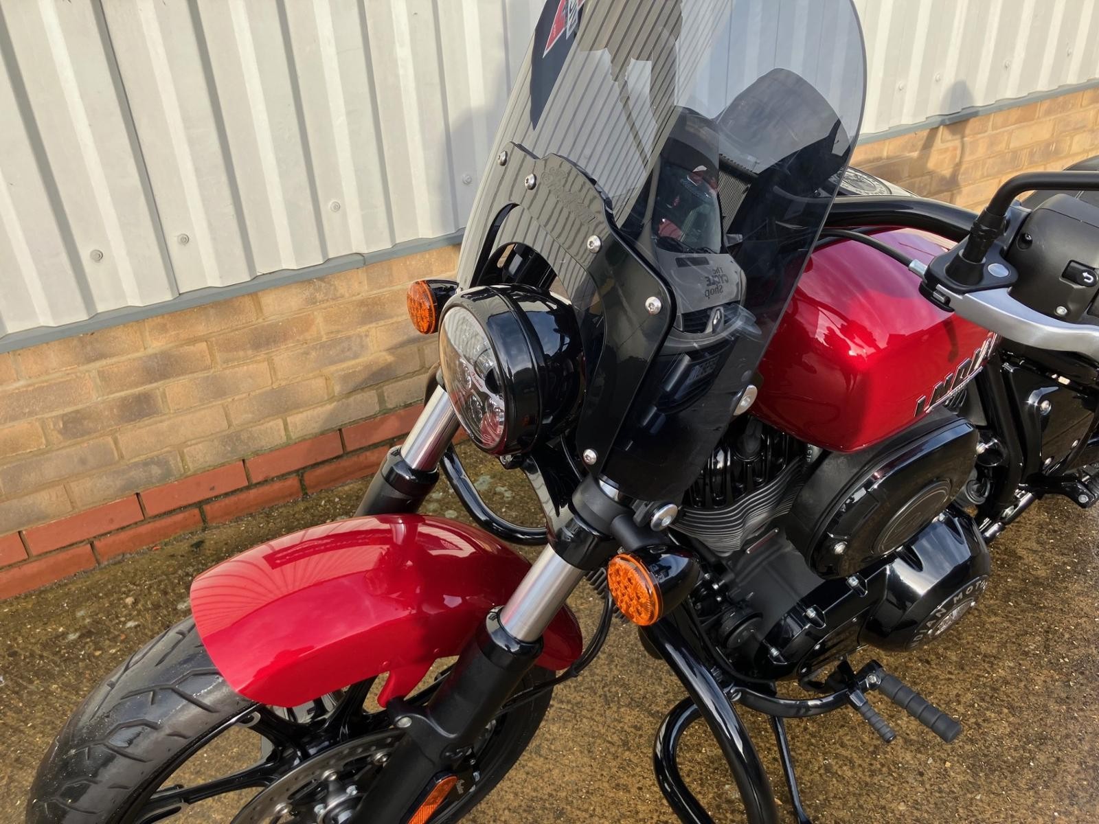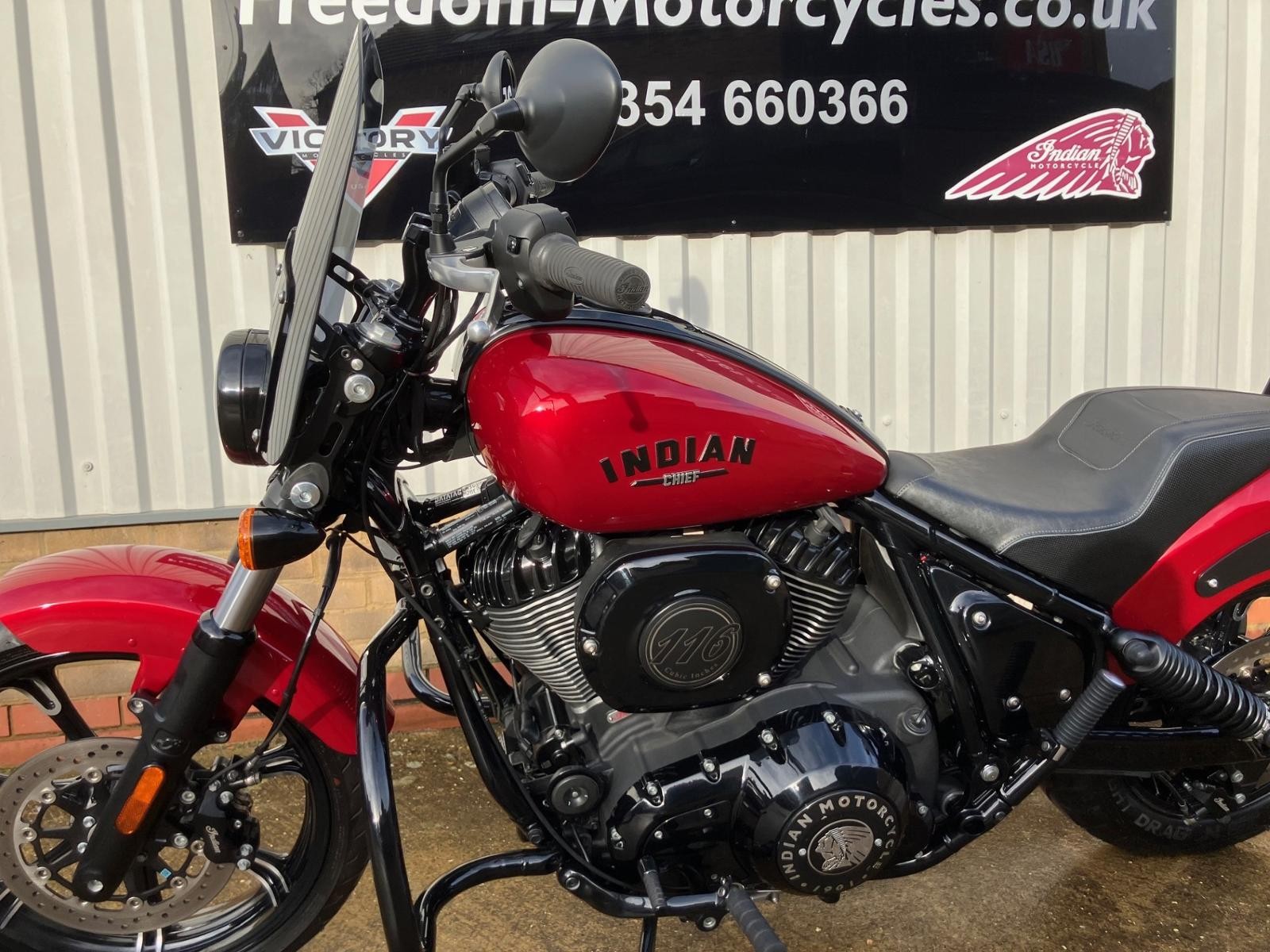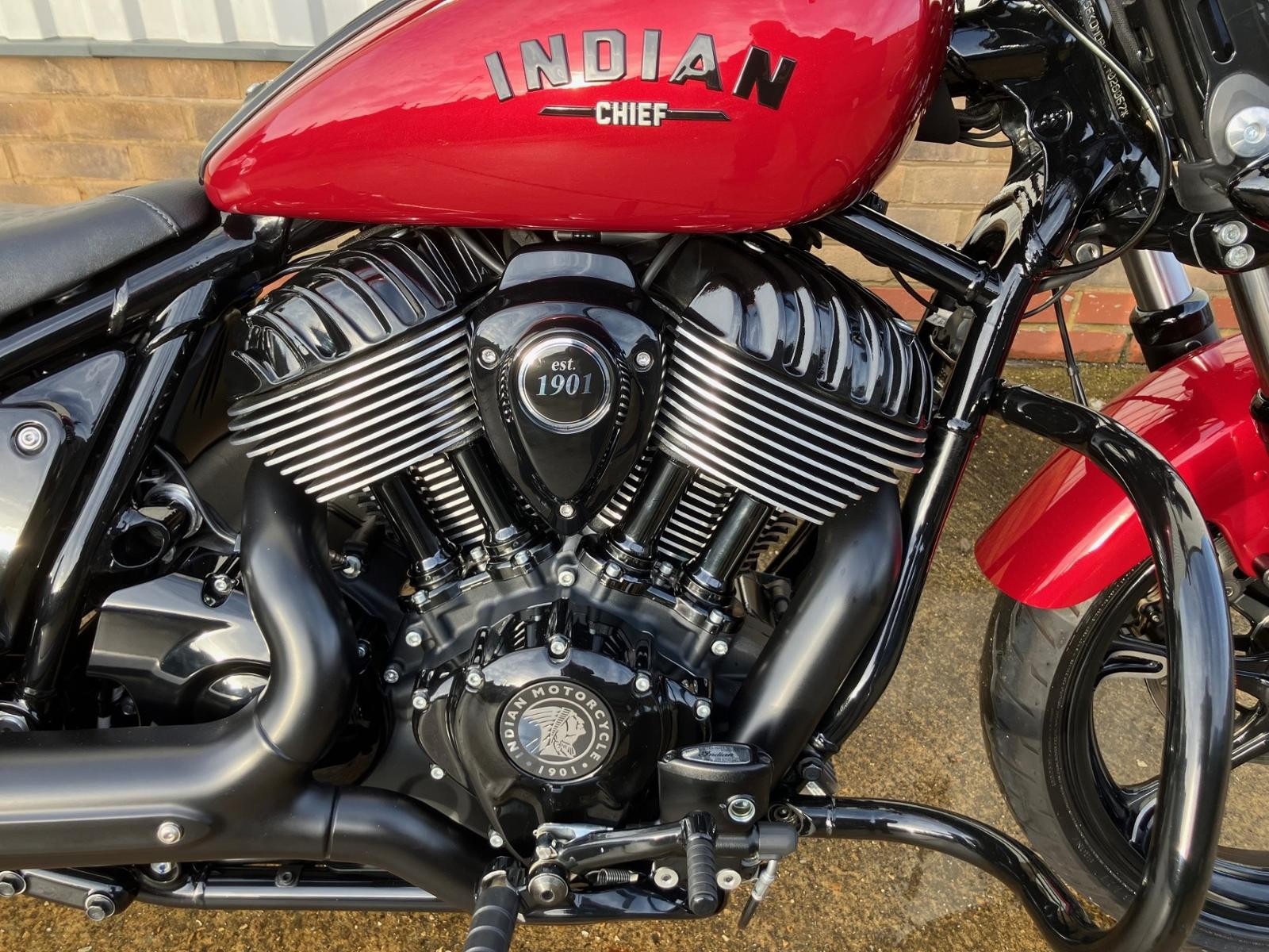 This 2025 Indian Chief Dark Horse finished in the Sunset Red metallic has just come into stock , it's had one owner from new and only covered 1449 miles. The Chief Dark horse is the middle weight cruiser with rider modes, cruise control.Chief is powered by the proven 1890cc Thunder Stroke engine pumping out 160nm or torque coupled to a six speed manual gearbox, when you twist the throttle open in sport mode she fly's. . There is a 4" digital speedo which has lost of features including built in sat-nav. This blke finished in the Sunset Red Metallic with the blacked out engine and exhaust is a real head tuner. Extra's include, dual seat, rear pegs, crash bars, screen, back rest.