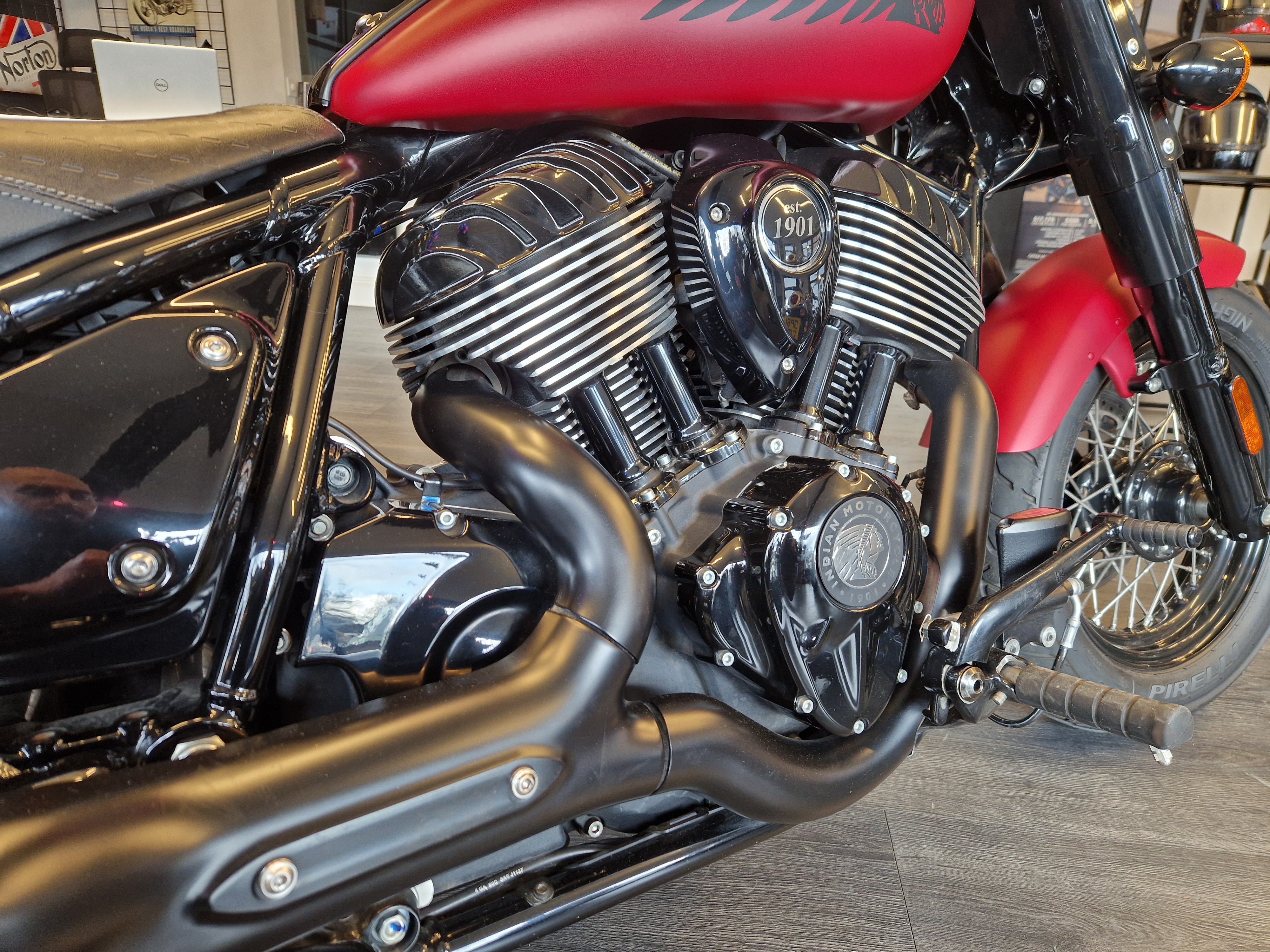 Oakmere Motorcycles are delighted to offer this stunning 2024-registered Indian Chief Bobber Dark Horse for sale from our Cheshire showroom.