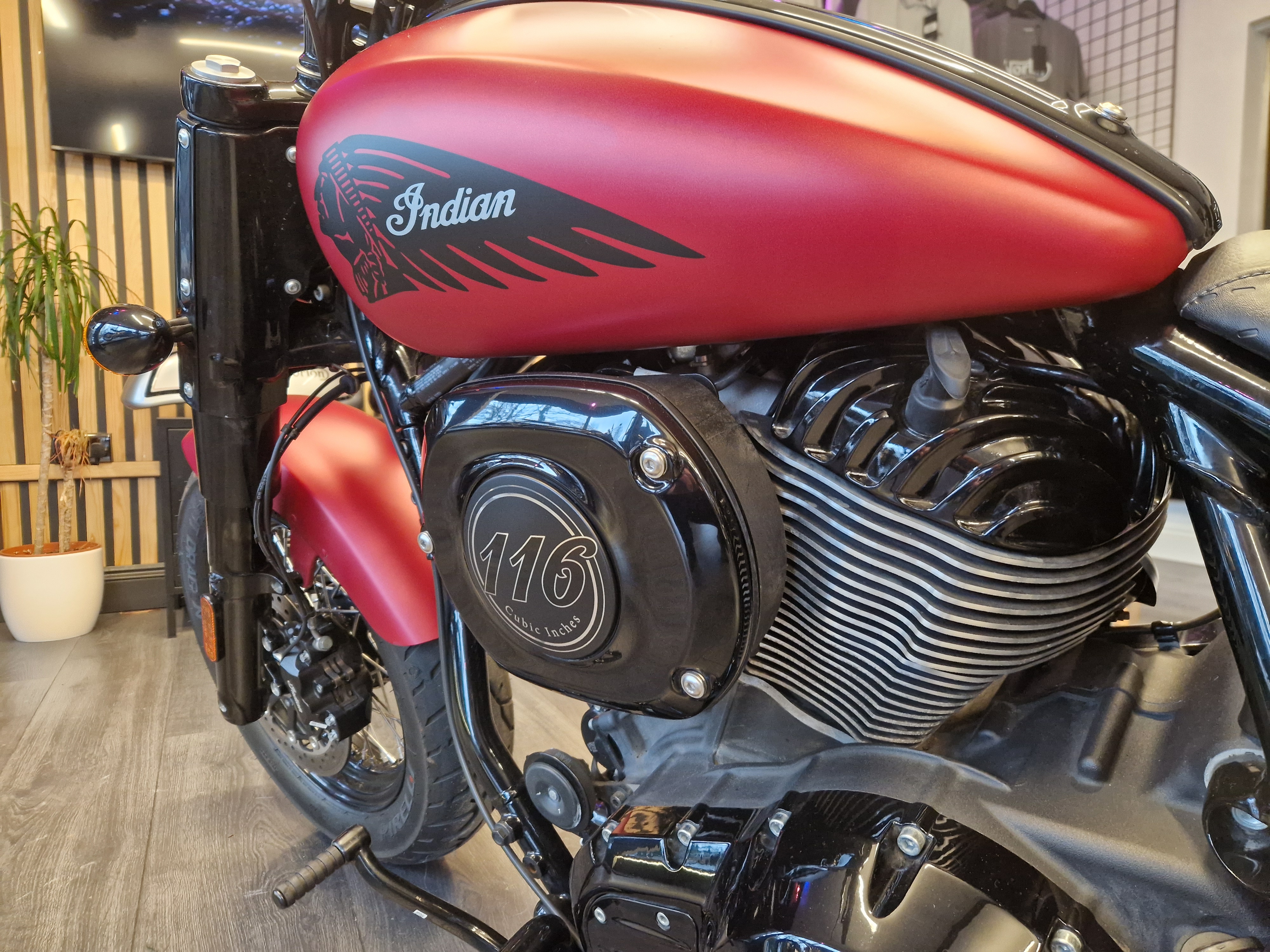 A one-owner bike finished in Sunset Red Matte Metallic and featuring Indians Thunderstroke 116 1890cc Air-Cooled V-Twin producing a mountainous 156nm of torque mated to a 6-speed manual transmission.