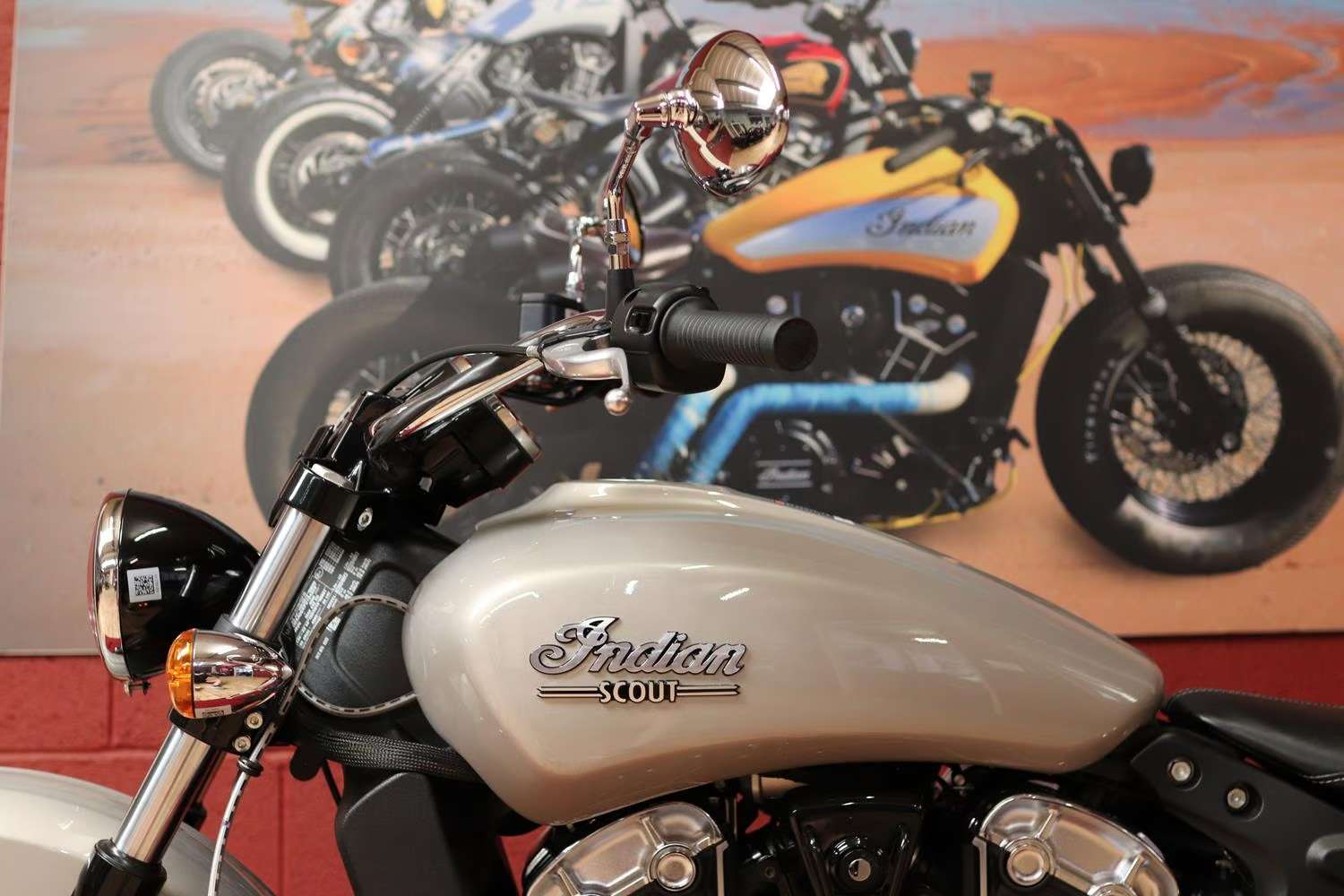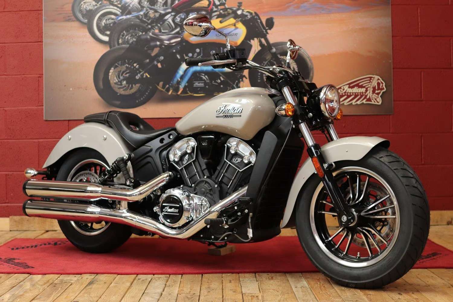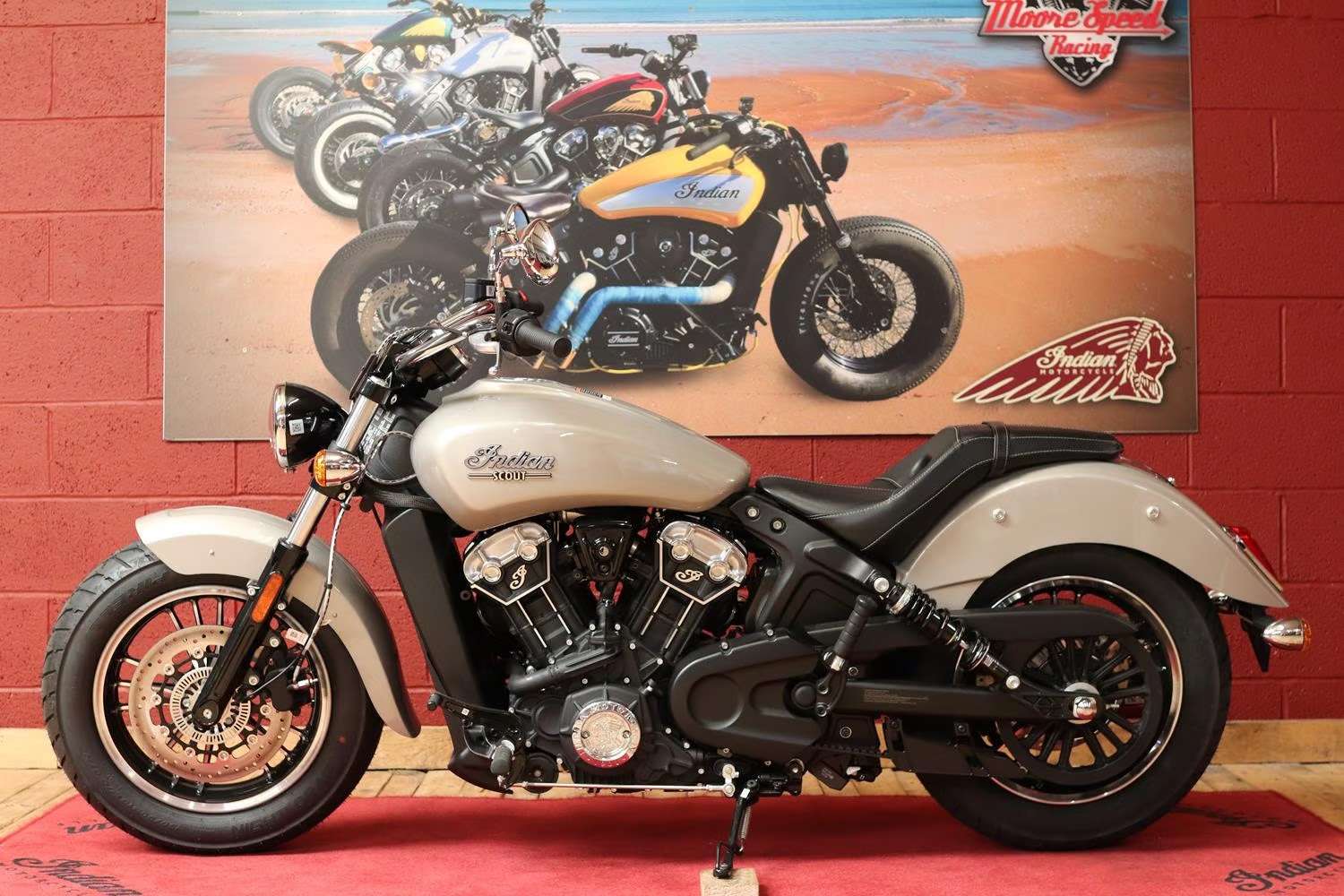This brand new Indian Scout is finished in stunning Silver Quartz Metallic.