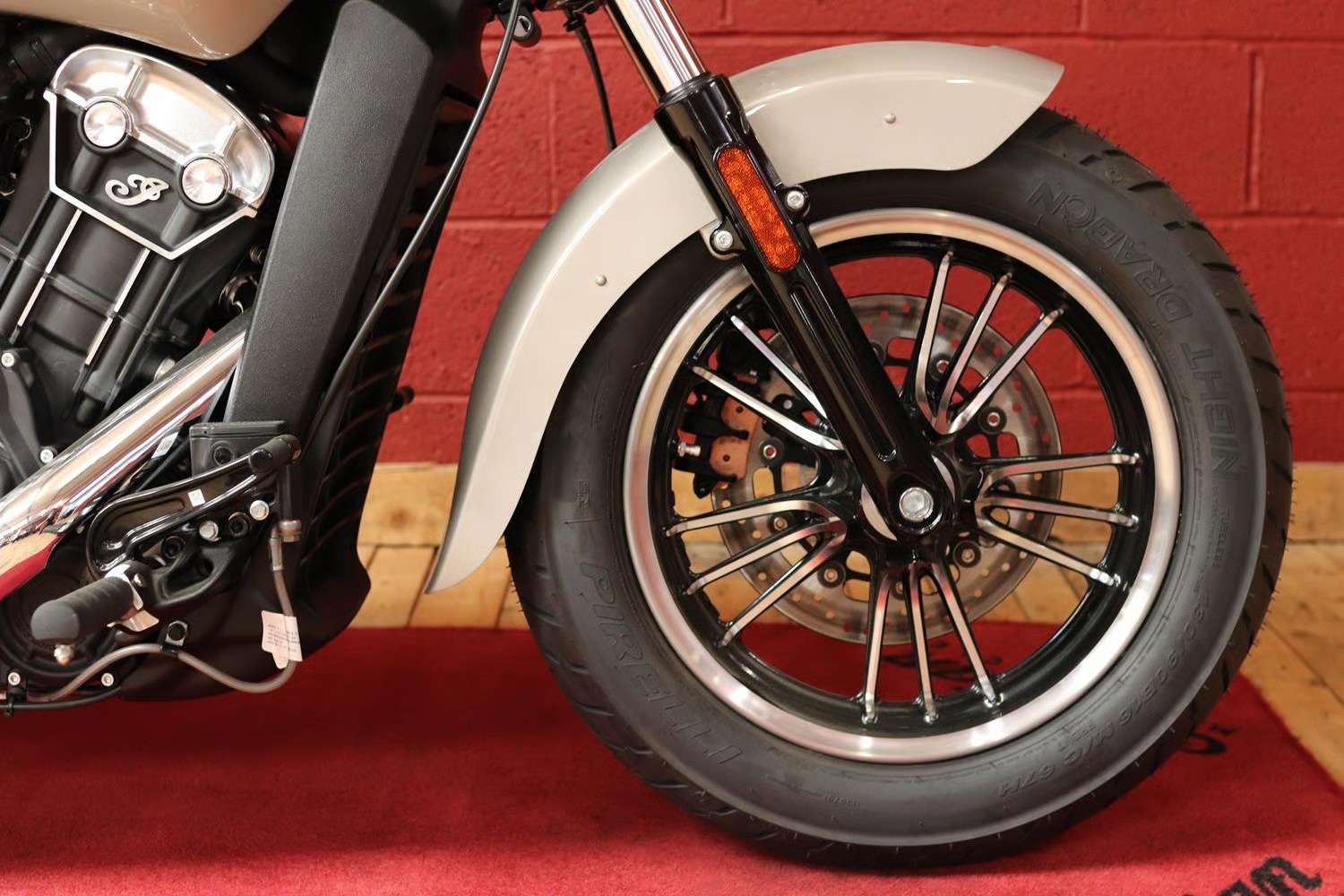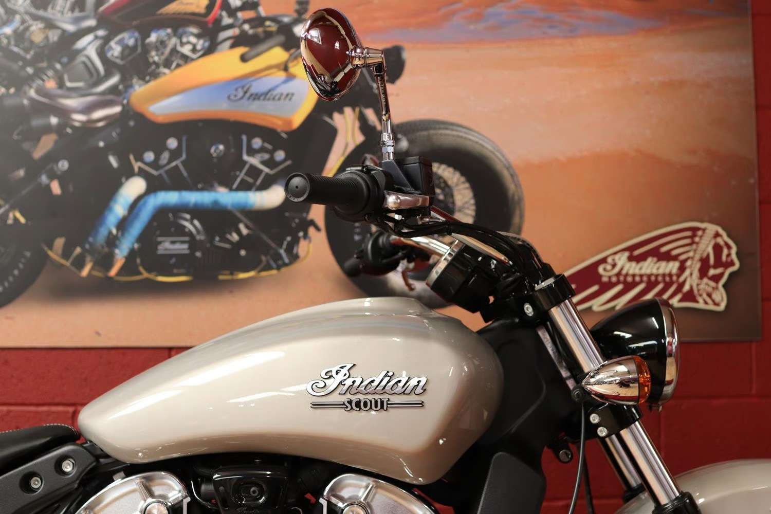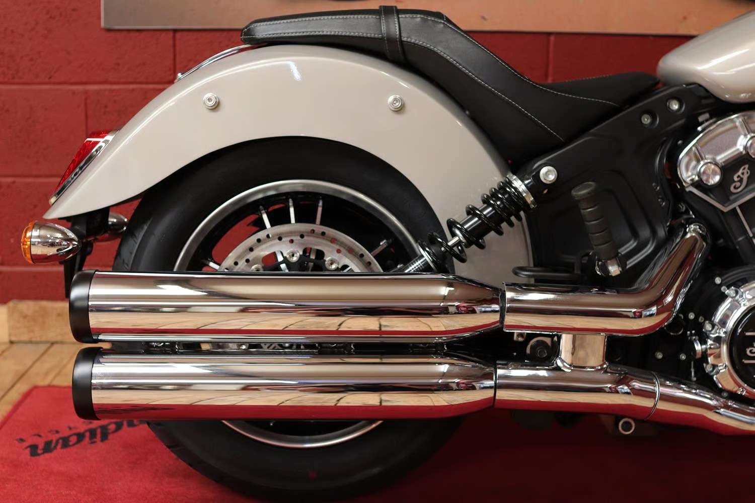 This brand new Indian Scout is finished in stunning Silver Quartz Metallic.