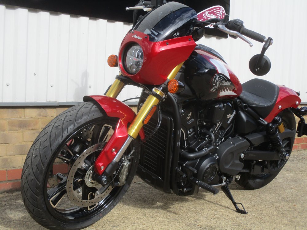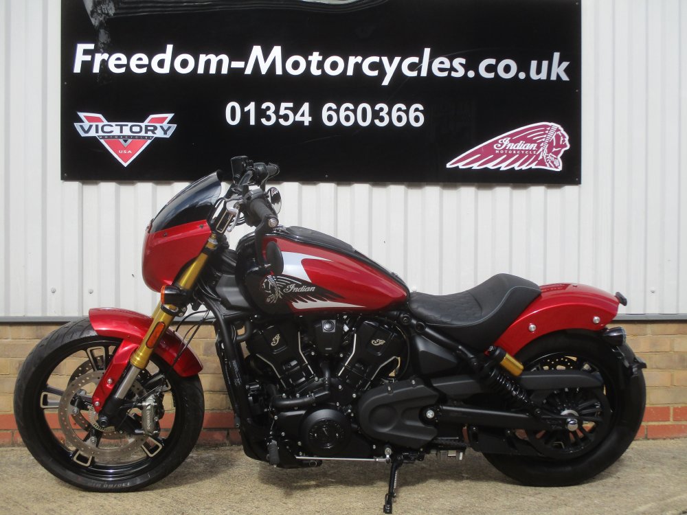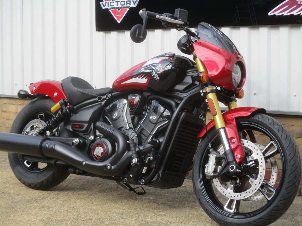 This NEW Indian Scout 101 is in stock now. Scout has undergone a transformation with the addition of a All New 1250cc engine producing 111HP and 109Nm or Torque. Beautifully styled and now fitted with 4" ride command screen featuring, sat nav, phone connectivity, bump/tow alert, vehicle health and vehicle locator. Finished in the Sunset Red Metallic or Ghost White. Fitted with dual brakes and inverted forks this sports cruiser turn heads.